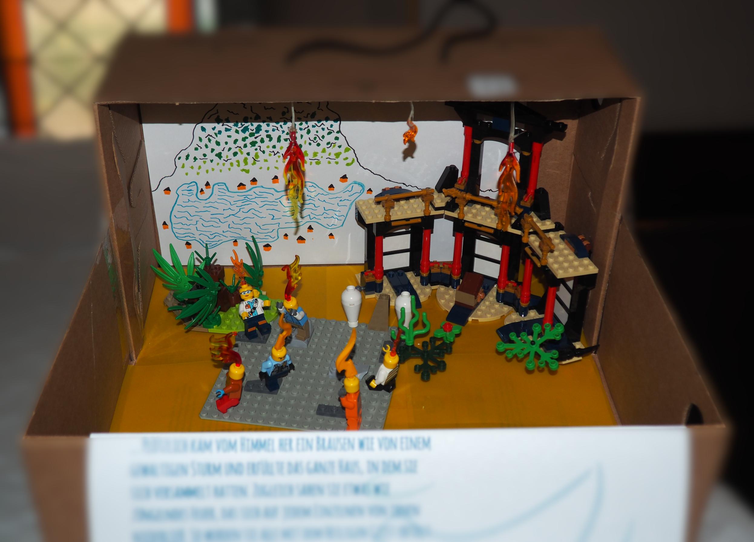 ob mit übrigen Legosteinen oder mit Stabpuppen