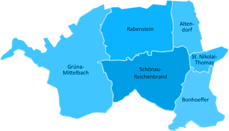 Die Region ist durch eine große Vielfalt geprägt. Wir finden eher ländlich geprägte Gemeinden wie Grüna-Mittelbach, Kirchgemeinden in den gewachsenen Chemnitzer Stadteilen wie Schönau-Reichenbrand bis hin zur Dietrich-Bonhoeffer-Kirchgemeinde, deren Geschichte seit 1979 eng mit der größten Plattenbausiedlung der Stadt verbunden ist.