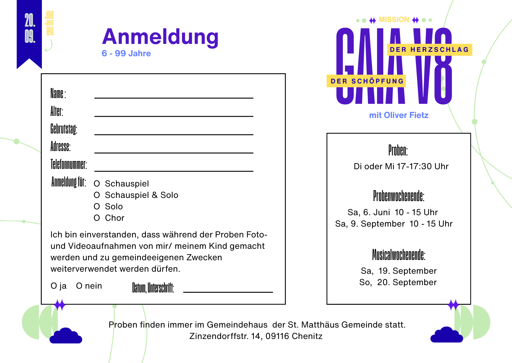 Im September 2026 möchten wir in unserer St.-Matthäus-Kirche das Musical GAIA V8 – Der Herzschlag der Schöpfung aufführen.